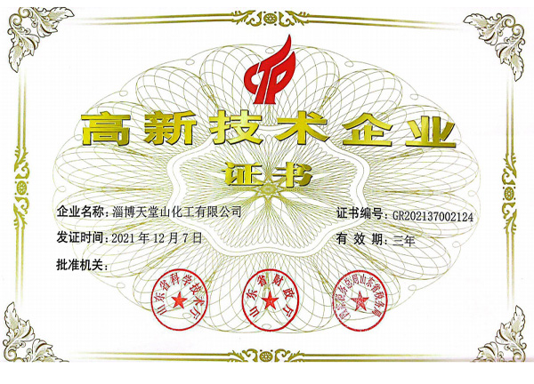 公司產(chǎn)品符合國(guó)家的產(chǎn)業(yè)政策,各種手續(xù)齊全,通過(guò)了環(huán)保、衛(wèi)生、消防、安全生產(chǎn)許可等各項(xiàng)驗(yàn)收,企業(yè)化學(xué)品安全標(biāo)準(zhǔn)化三級(jí)達(dá)標(biāo)驗(yàn)收,并且通過(guò)了ISO9001質(zhì)量管理體系認(rèn)證、ISO14001環(huán)境管理體系、ISO45001職業(yè)健康管理體系,先后被有關(guān)部門授予“市級(jí)重合同守信用企業(yè)”“消費(fèi)者滿意單位”“質(zhì)量、計(jì)量管理先進(jìn)單位”“勞動(dòng)關(guān)系和諧企業(yè)”“企業(yè)免檢單位”“淄博市專精特新中小企業(yè)”“山東省化工明星單位”“山東化工發(fā)展?jié)摿?0強(qiáng)”“淄博市智能車間”“山東省創(chuàng)新型中小企業(yè)”“科技型中小企業(yè)”“高新技術(shù)企業(yè)”“山東省專精特新”等稱號(hào)。